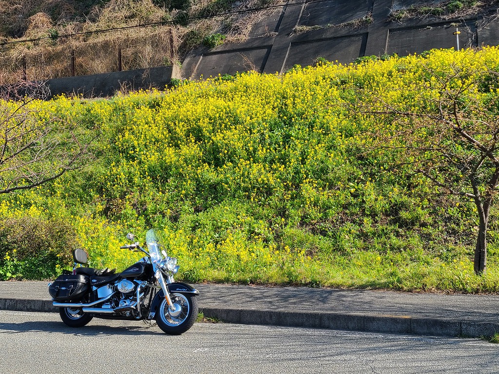 先日ハーレーで行った愛媛県伊予市の閏住(うるすみ)の菜の花畑の写真を紹介します。