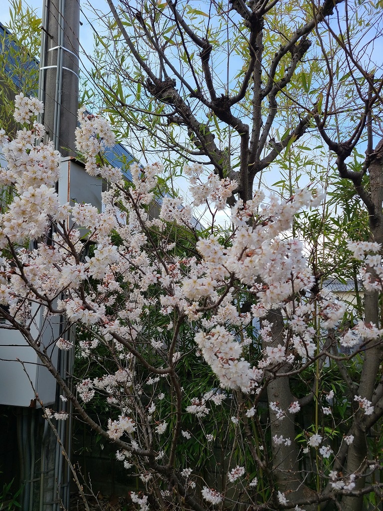 今日はとってもいい天気でした。バイクに乗りたいところでしたが、平日はなかなか難しいので、家の満開の桜(ソメイヨシノ?)を紹介します。