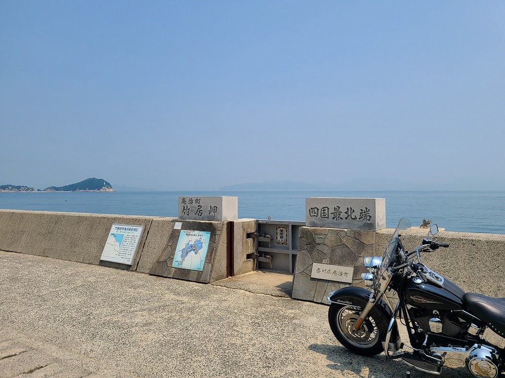 それで、まず、10年以上前にマスツーリングで行ったことがある「四国の最北端」に行くことにしました。香川県高松市庵治町の庵治半島に位置する『竹居観音岬』です。