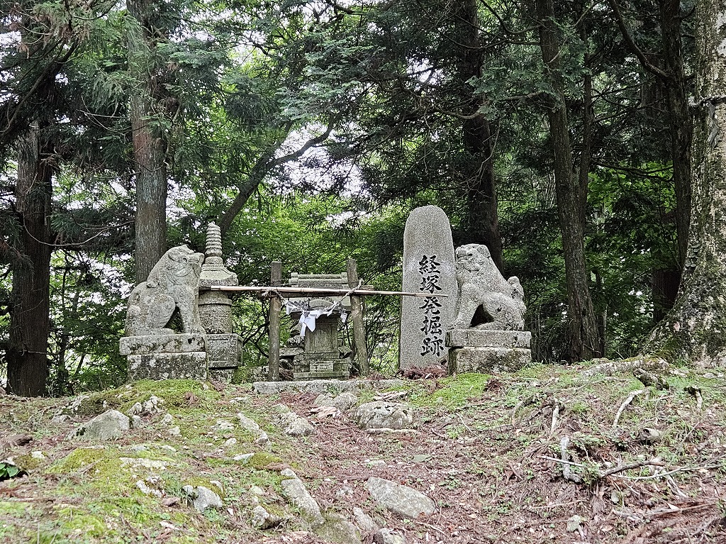 境内奥に、「経塚発掘跡」の石碑が建っているところがあり、ここから国宝指定を受けた銅宝塔が出土したそうです。