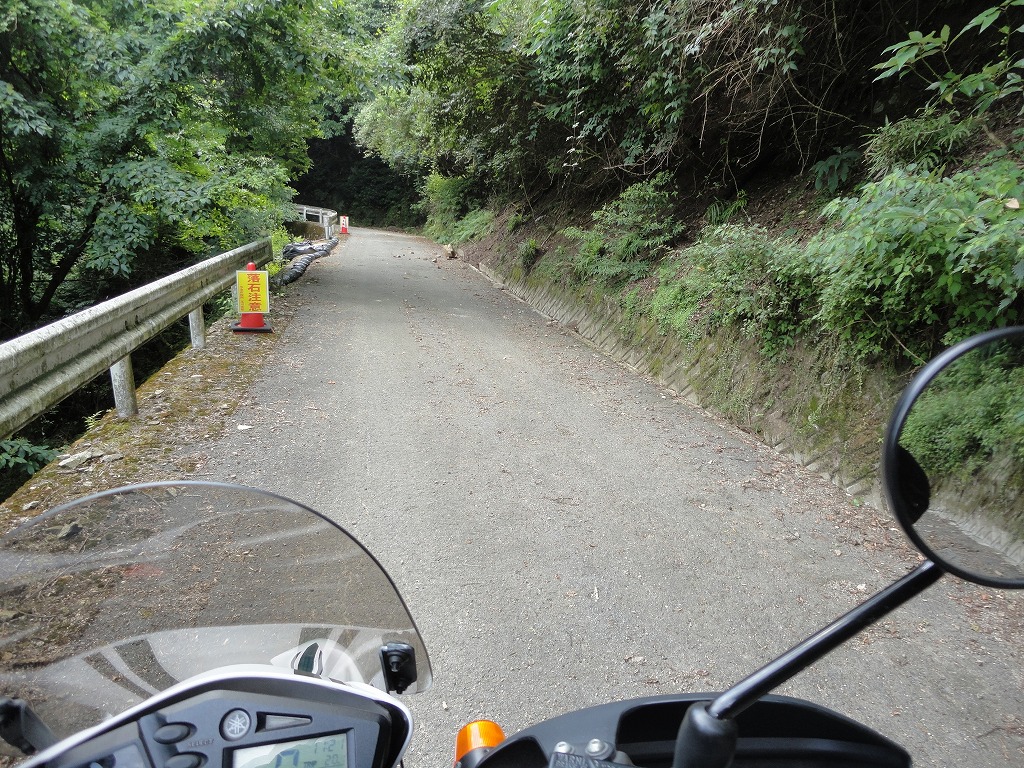 林道ですが、ちゃんと舗装をされていました。ただ、道路上に小石や小枝がころがっていて、滑りそうになったところもありましたが、なんとか駐車場にたどり着くことができました。