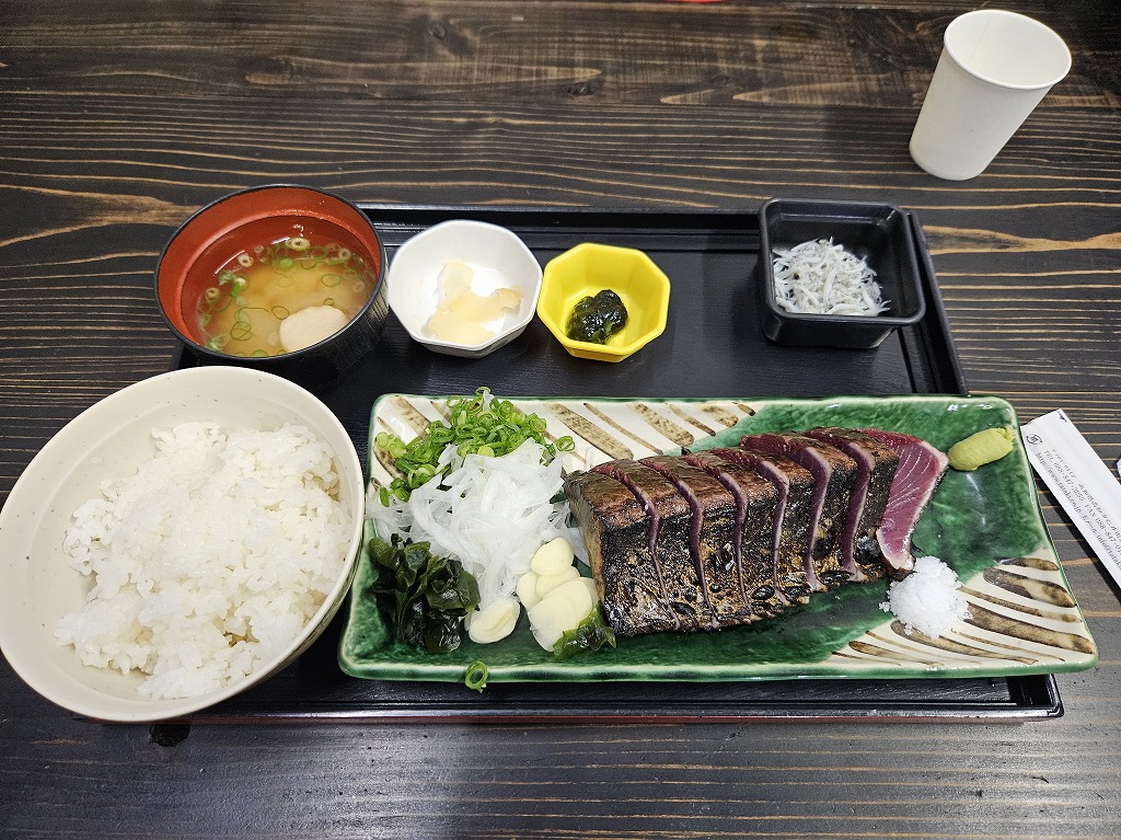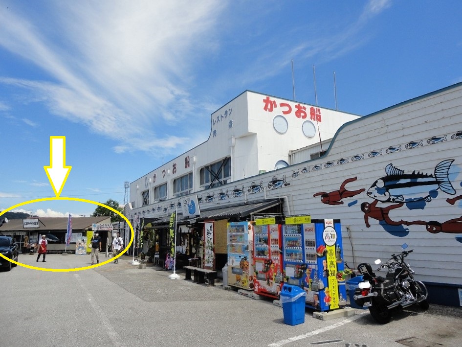 行きは、松山自動車道から高知自動車道を通り、高知ICで降りて、一般道を通って、桂浜を目指しました。ところが、浦戸大橋の手前辺りから渋滞になっていたので、どうしようかと迷っていたら、ちょうど「土佐タタキ道場」というお店の看板が見えたので、お昼にすることにしました。