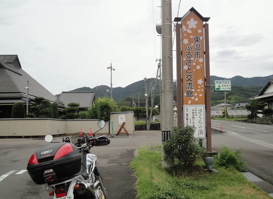 でも、そのお蔭で暑さが少し和らいだので、なんとかバイクに乗れそうです。ただ雨が降りそうなので、ハーレーではなく、セローに乗ることにしました。どこに行こうか考えているときに、友人が「『東温市のさくらの湯』がいいよ!」と言われていたのを思い出しました。最近、暑さで疲れが倍増していたので、温泉に入って夏の疲れを少しでもとりたいなあと思い、東温市を目指すことにしました。