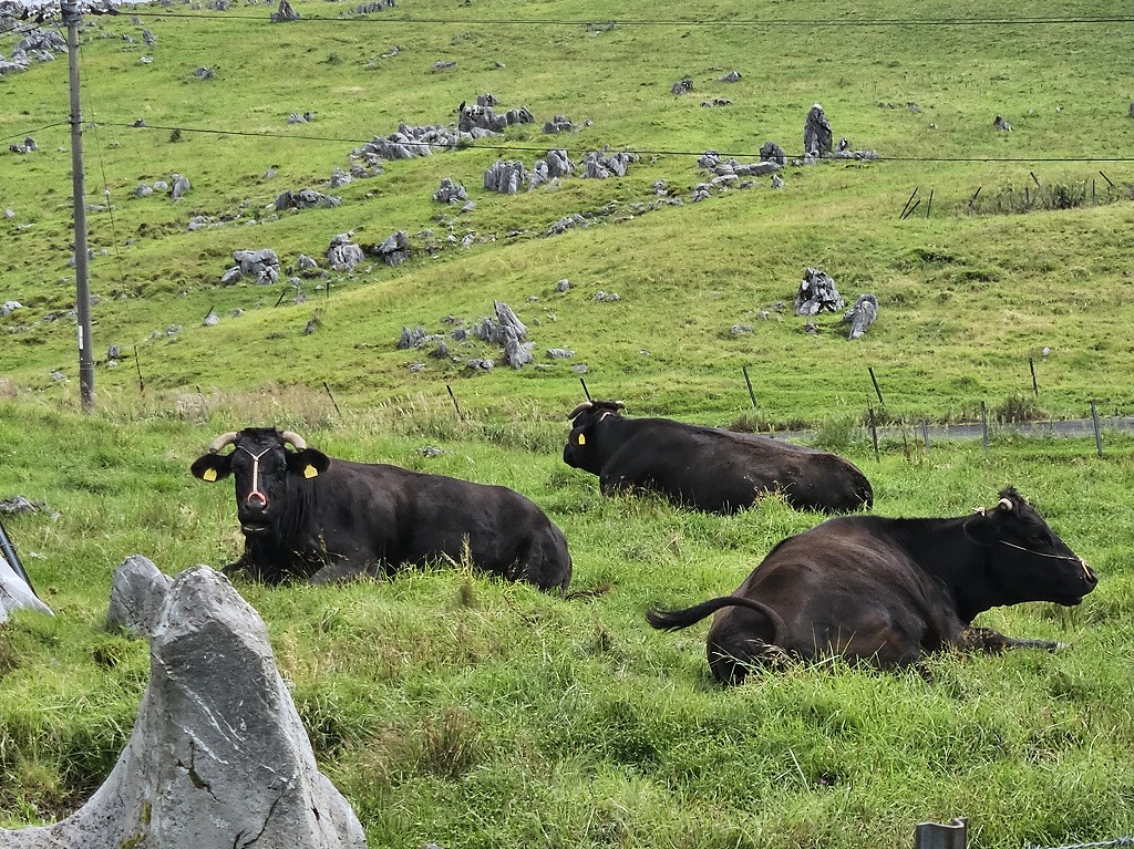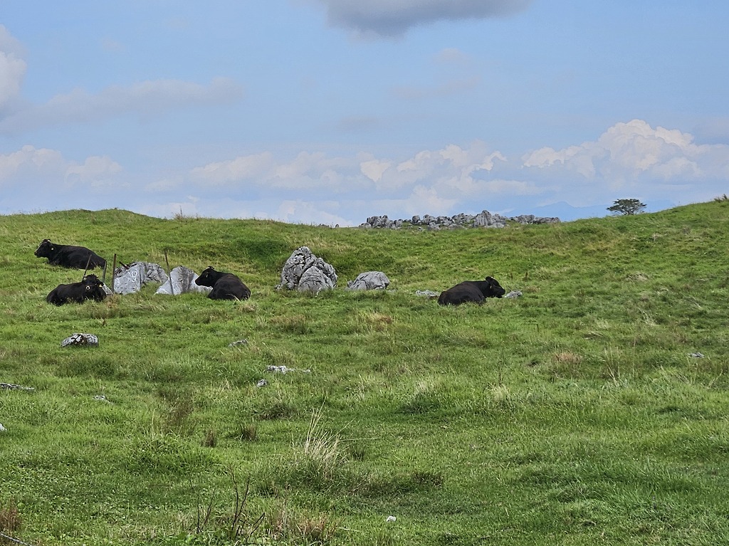 余談ですが、お昼に、「姫鶴平」のベンチで🍙(おにぎり)をほおばっていると、牛さんと目と目が合いました。
