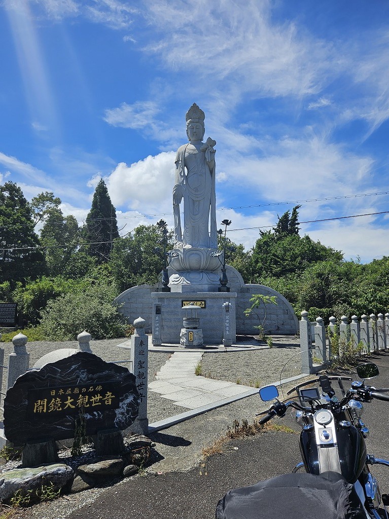 ここからは南下して、「兵庫県立公園あわじ花さじき」を目指しました。途中、優しいまなざしの「開鏡大観世音」に出会いました。日本屈指の石佛だそうです。
