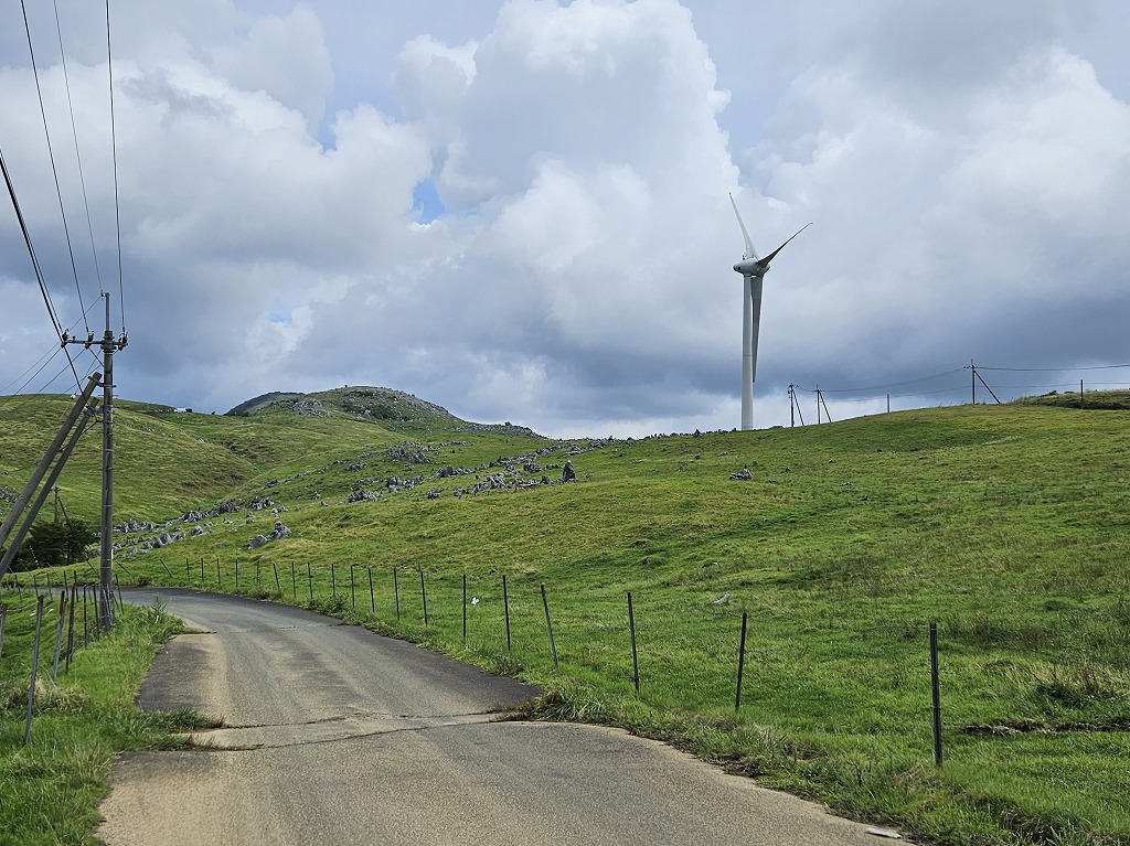 手を合わせた後、走っていると、風力発電のプロペラを見つけました。結構速く回っていました。