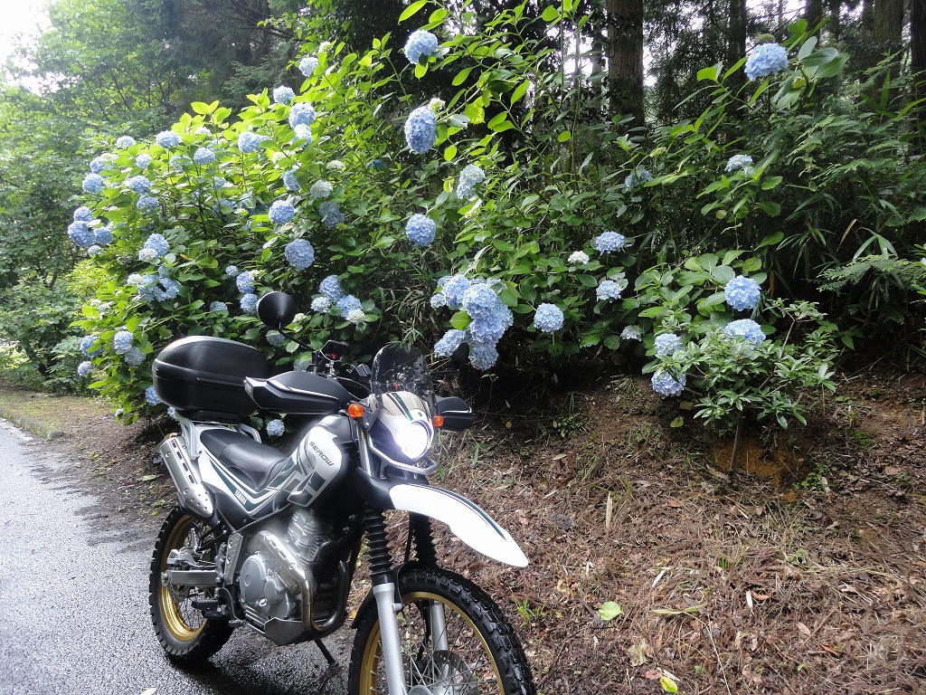舗装してある林道を通って小鴨部を目指して走っていると、紫陽花がきれいに咲いていたので思わず停まって写真を撮りました。