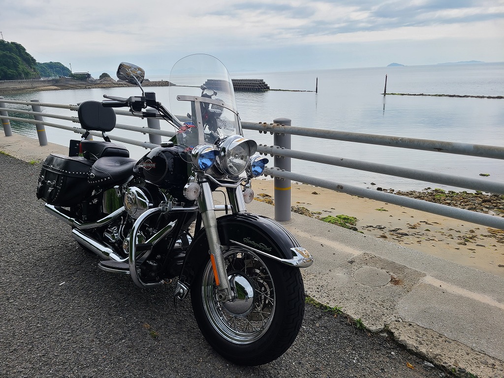 途中、水ケ峠トンネルのあたりに来ると、急に黒い雲が目の前に広がってきて心配しましたが、なんとか雨にあうことなく、海岸線に出ることができました。素敵なオーシャンビューが目に飛び込んできたので、停まって写真を撮りました。海風をいっぱい吸い込みながら、私は海が好きなんだなあと改めて感じました。