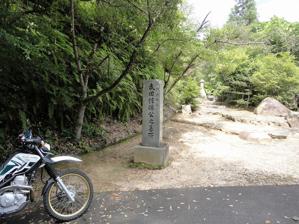 須賀神社を通り過ぎた辺りで右折して、朝倉ダムを目指します。途中、朝倉ダムへ行くトンネルを抜けるとすぐに武田信勝公の墓があります。武田信勝といえば、武田信玄の孫か?果たして、その真相は!!!歴史に興味がある方は調べてみてください。