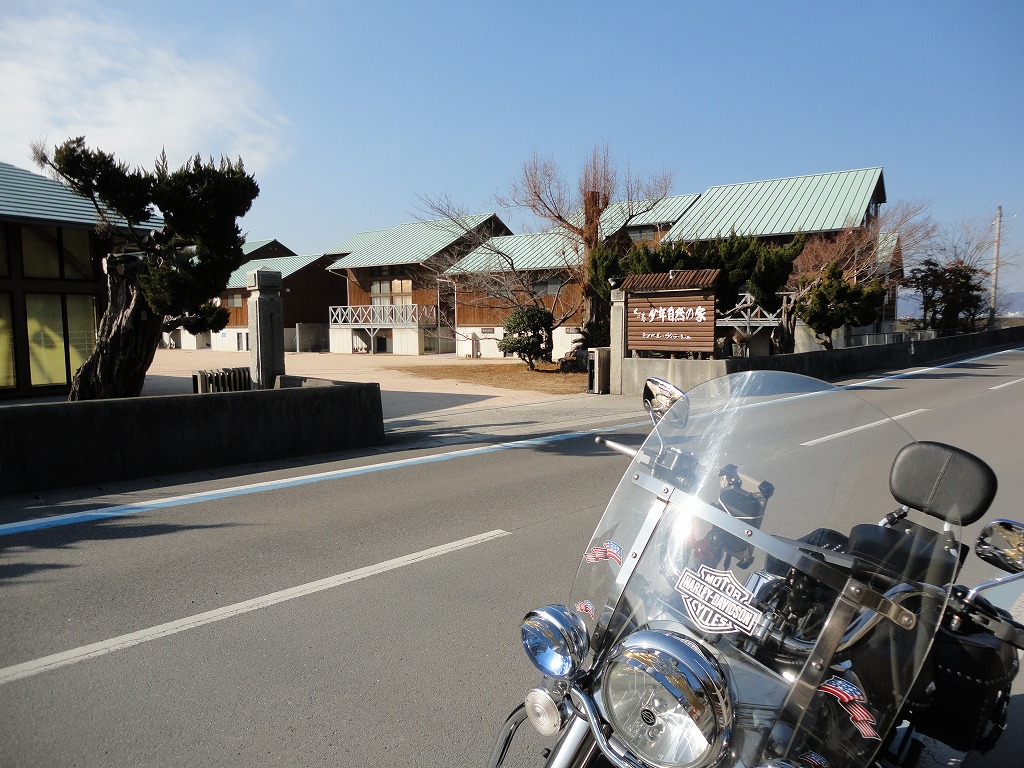 さらに走り続け、途中から南下し始めると、大三島少年自然の家(ミロアール・ヴィラージュ)が見えてきました。平成14年にリニューアルされたようですが、それまでは、旧鏡小学校の木造校舎であったと記憶しています。多くの子どもたちがたくさんの思い出をつくった場所です。懐かし~~~い!